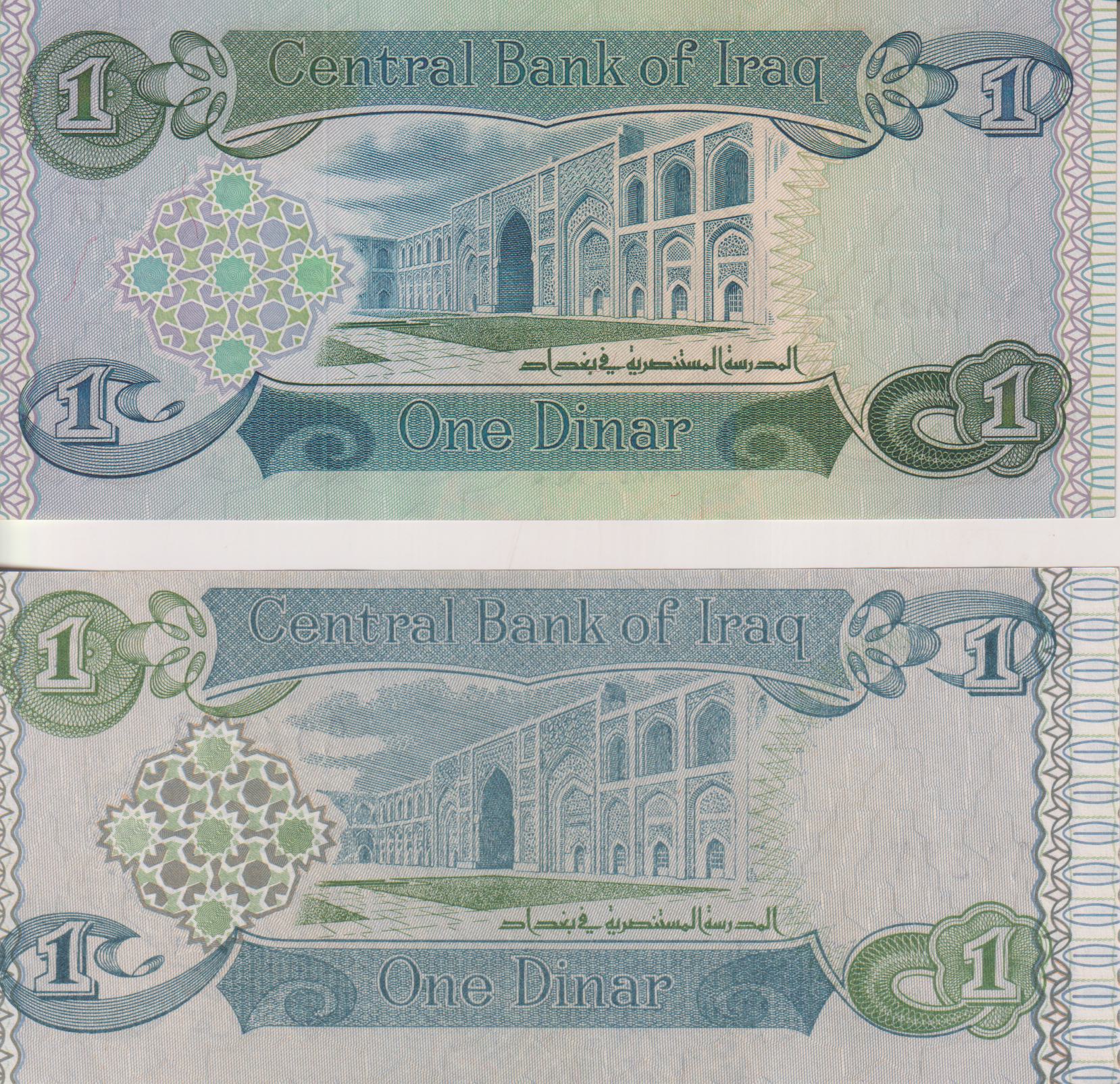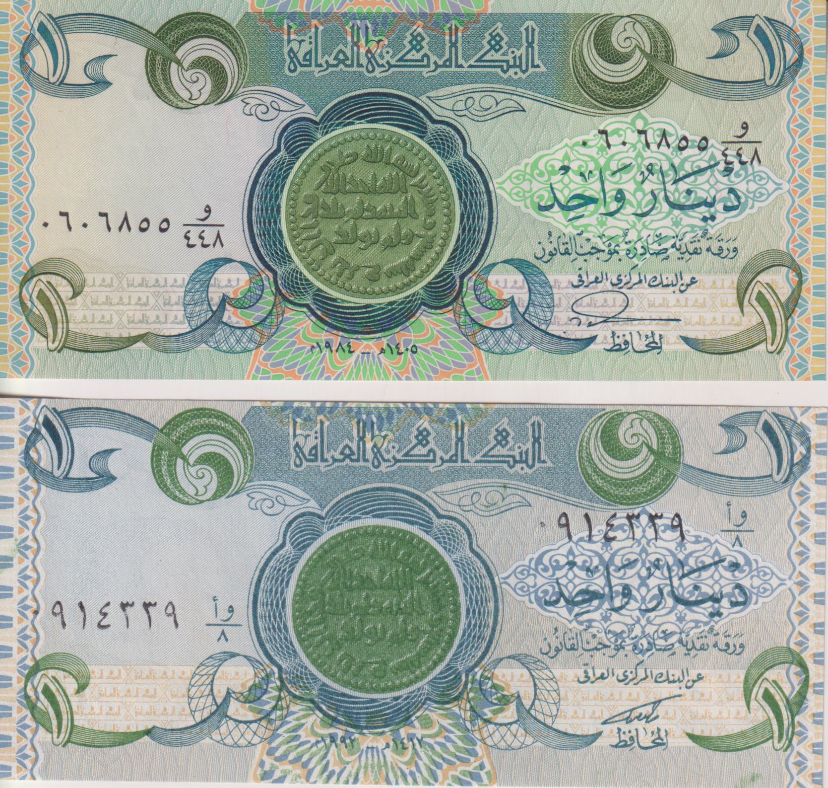 2x Iraq 1 Dinar 1979-84 & 1992 (Gulf War Emergency issue) P69,79 UNC