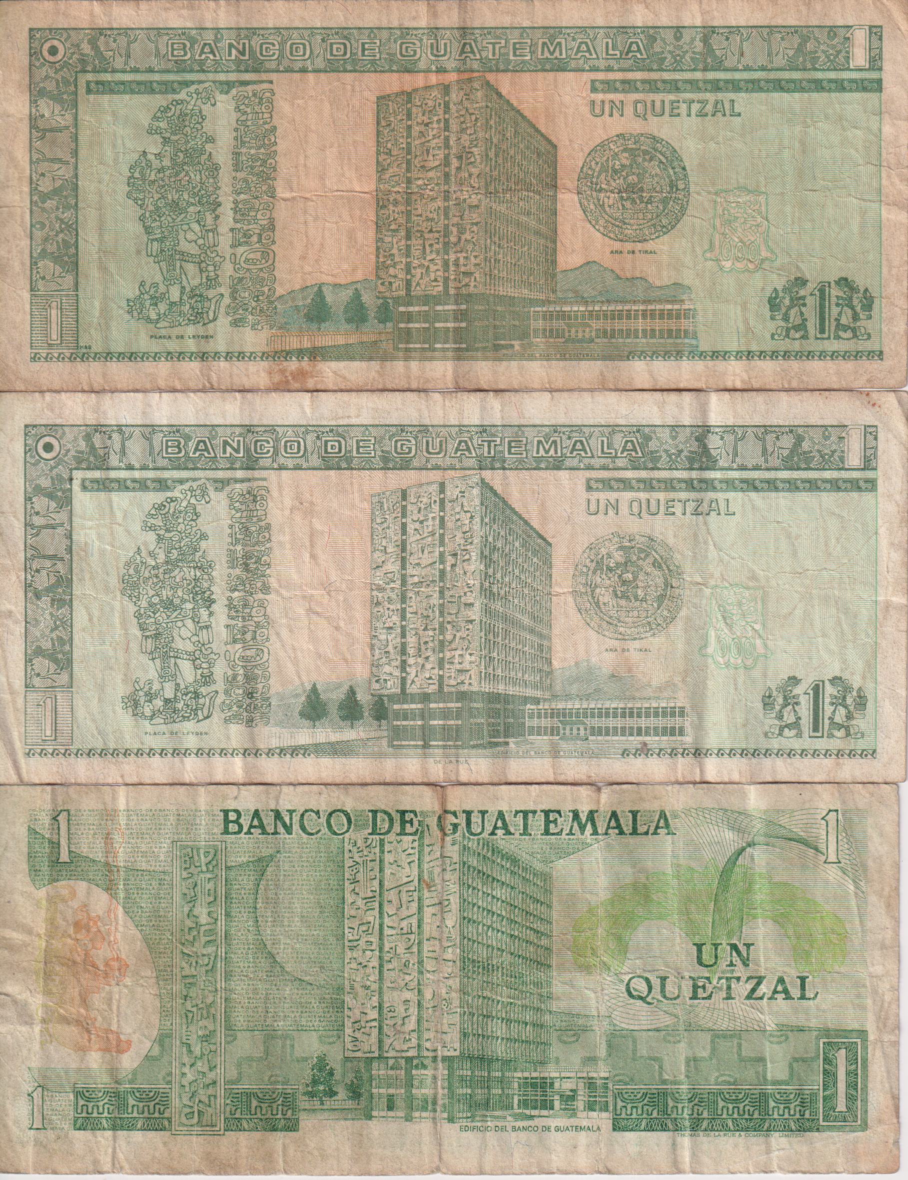 3 x GUATEMALA 1 Quetzal 1983, 95, 98 P66,87,99 F-VF