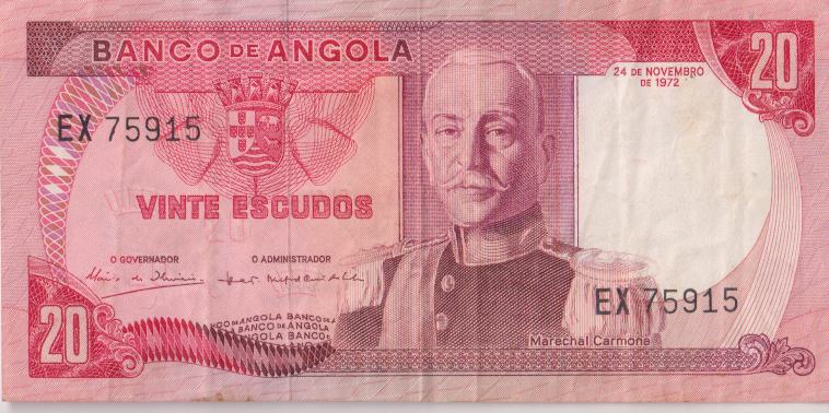 ANGOLA 20 Escudos 1972 P99 VF
