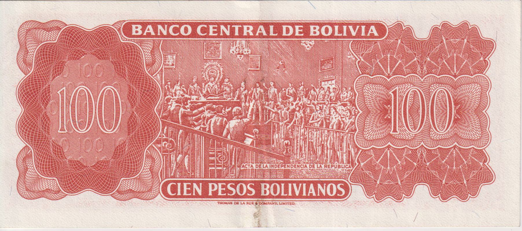 BOLIVIA 100 Bolivianos 1982 P164A VF+ - Image 2
