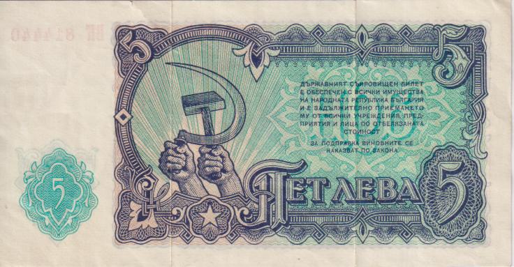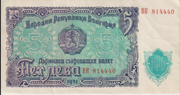 BULGARIA 5 Leva 1951 P82 VF