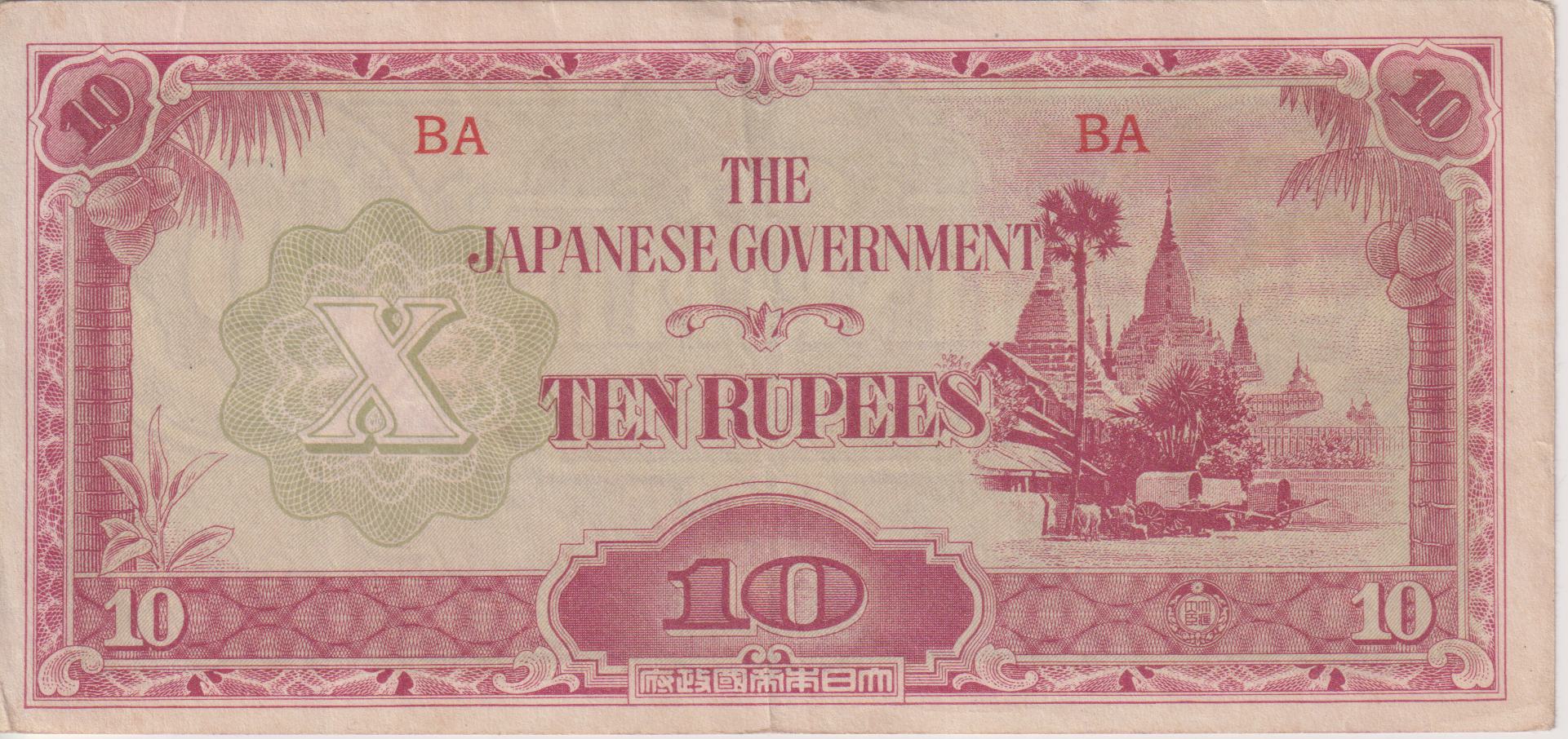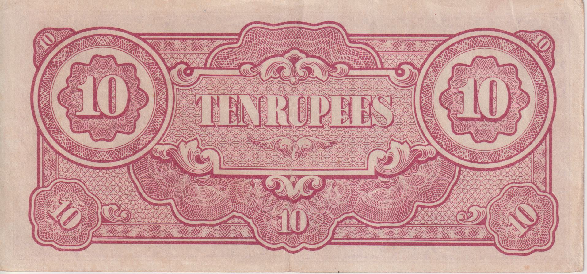 Burma Japanese Military Occupation 10 Rupees 1942 XF World War 2