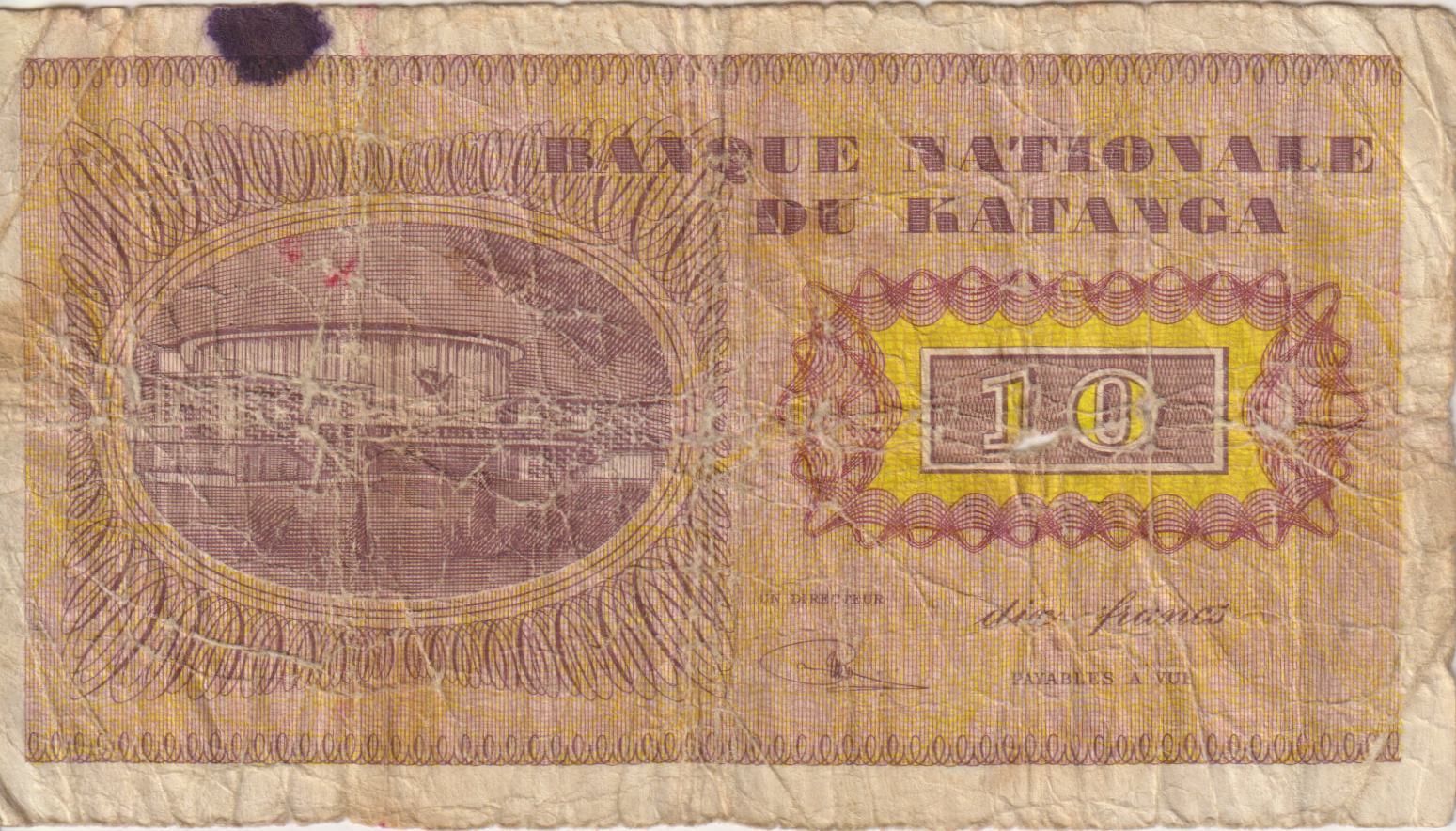DRC – KATANGA 10 Francs “Moise Tshombé” 1960 P5 VG (Scarce)