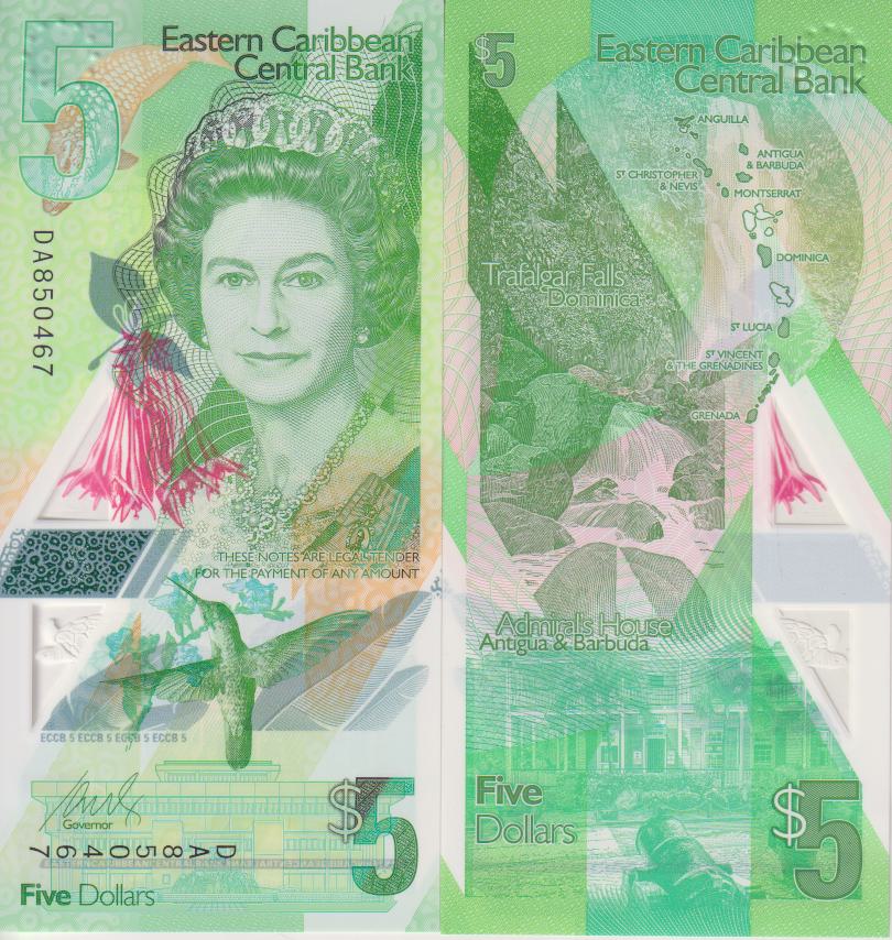 East Caribbean States 5 Dollars 2021 P-56 UNC, Polymer