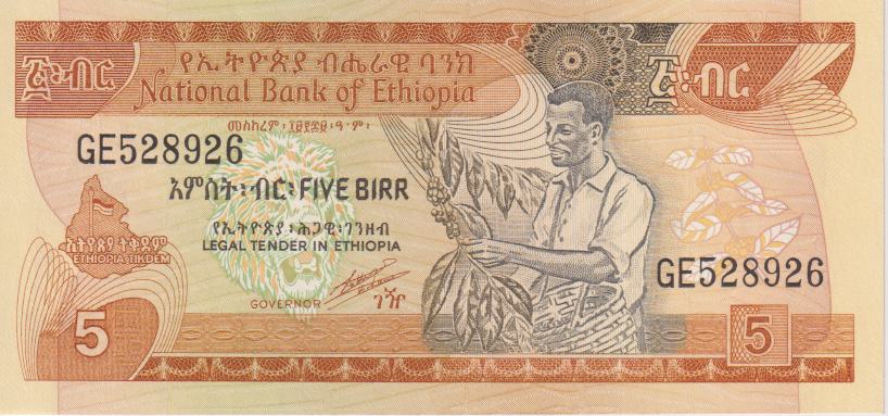 ETHIOPIA 5 Birr 1976 P31 UNC