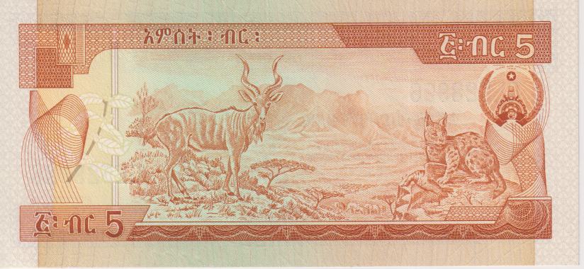 ETHIOPIA 5 Birr 1976 P31 UNC - Image 2