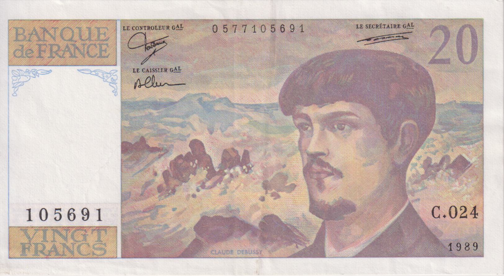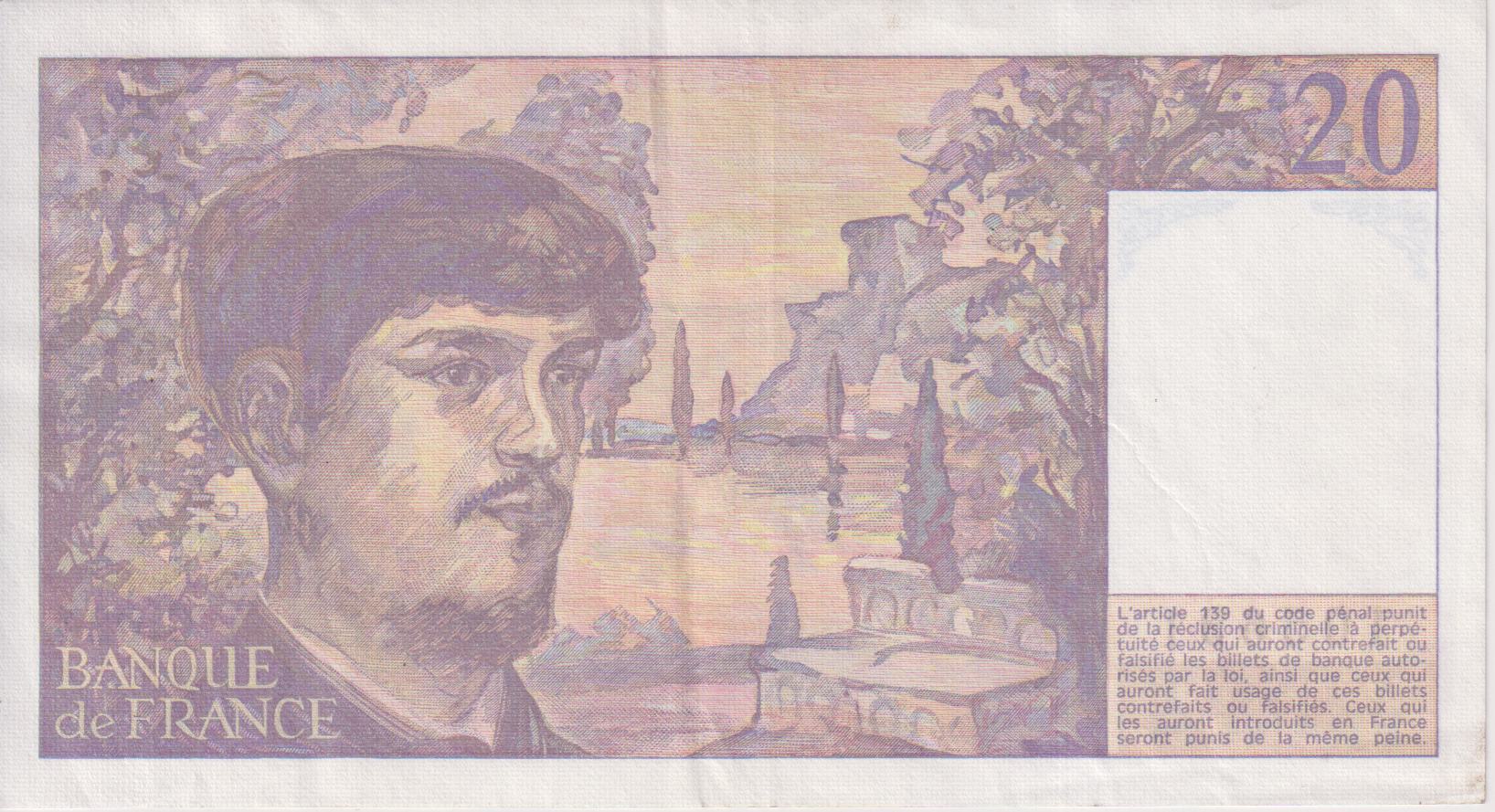 FRANCE 20 Francs – Debussy 1989 P151 VF