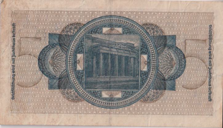 GERMANY - Reichsbanknote - 5 Reichsmark 1940-45  P#R138  F (World War 2) - Image 2