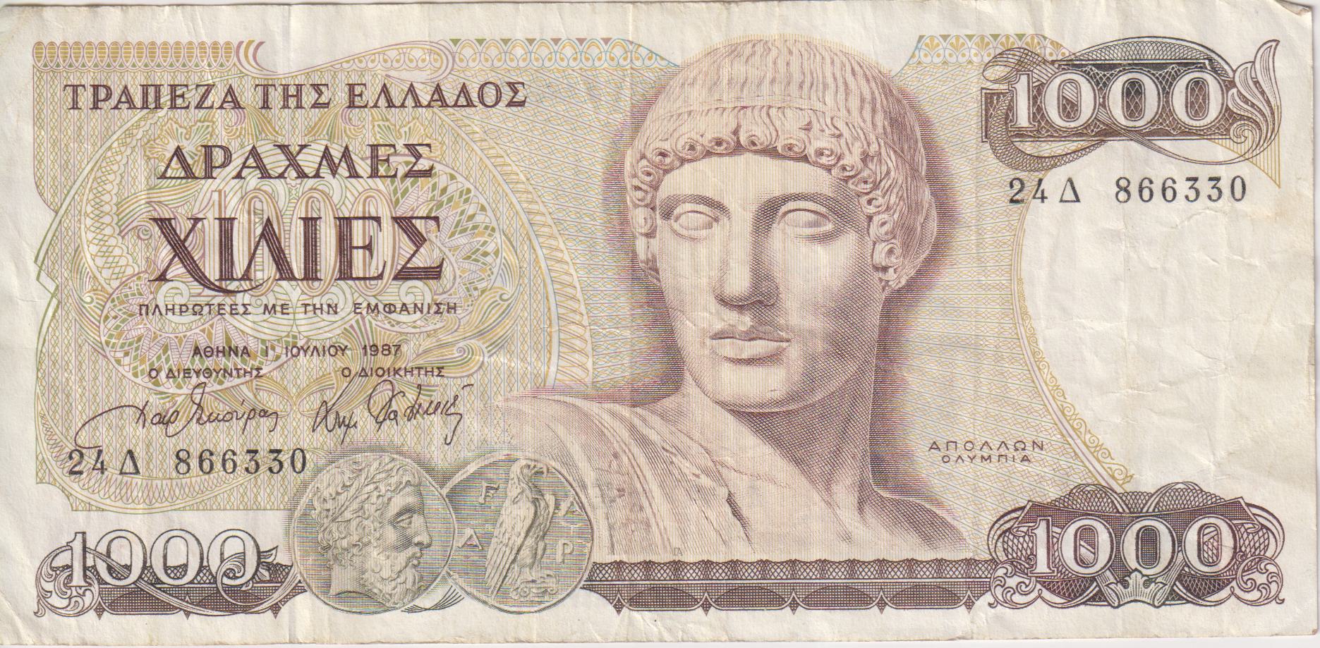 GREECE 1000 Drachmai 1987 P202 VF