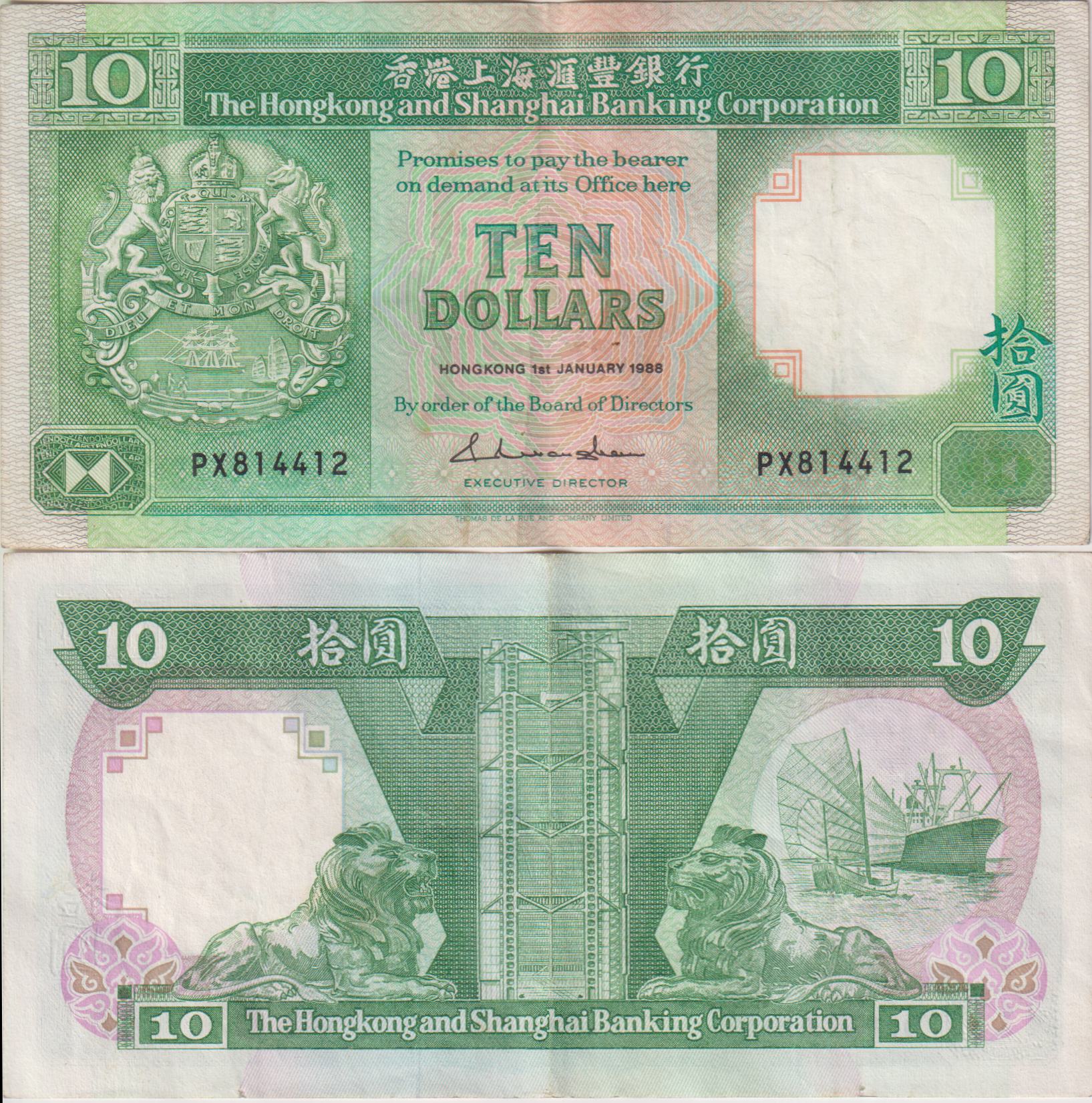 HONG KONG 10 Dollars 1988 P191 VF