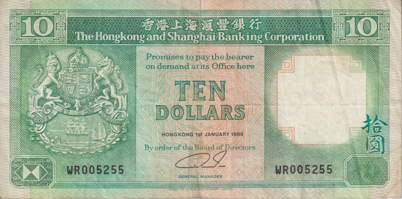 HONG KONG 10 Dollars 1989 P191c VF – SPECIAL OFFER