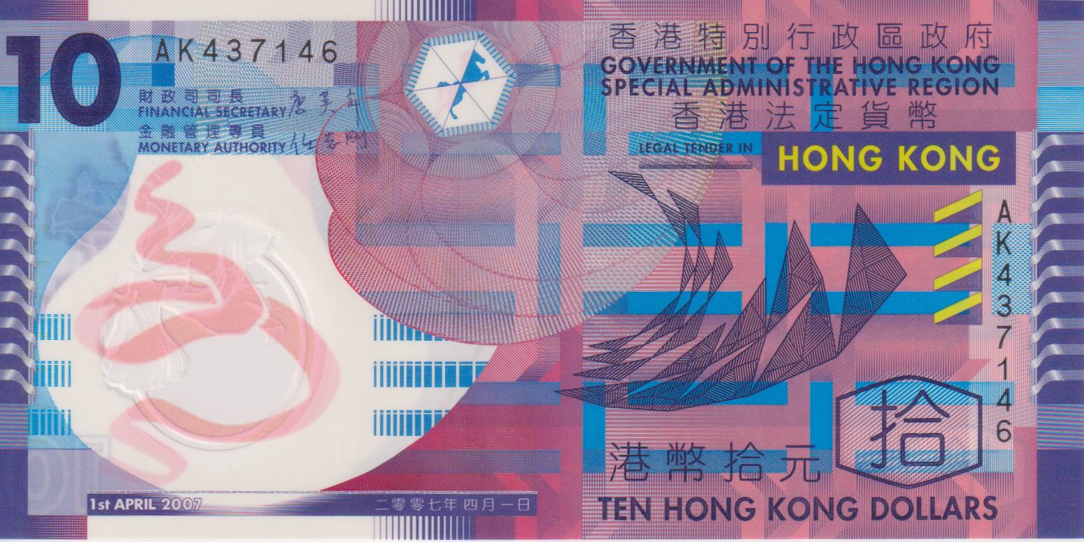 HONG KONG 10 Dollars 2007 P401 UNC Polymer