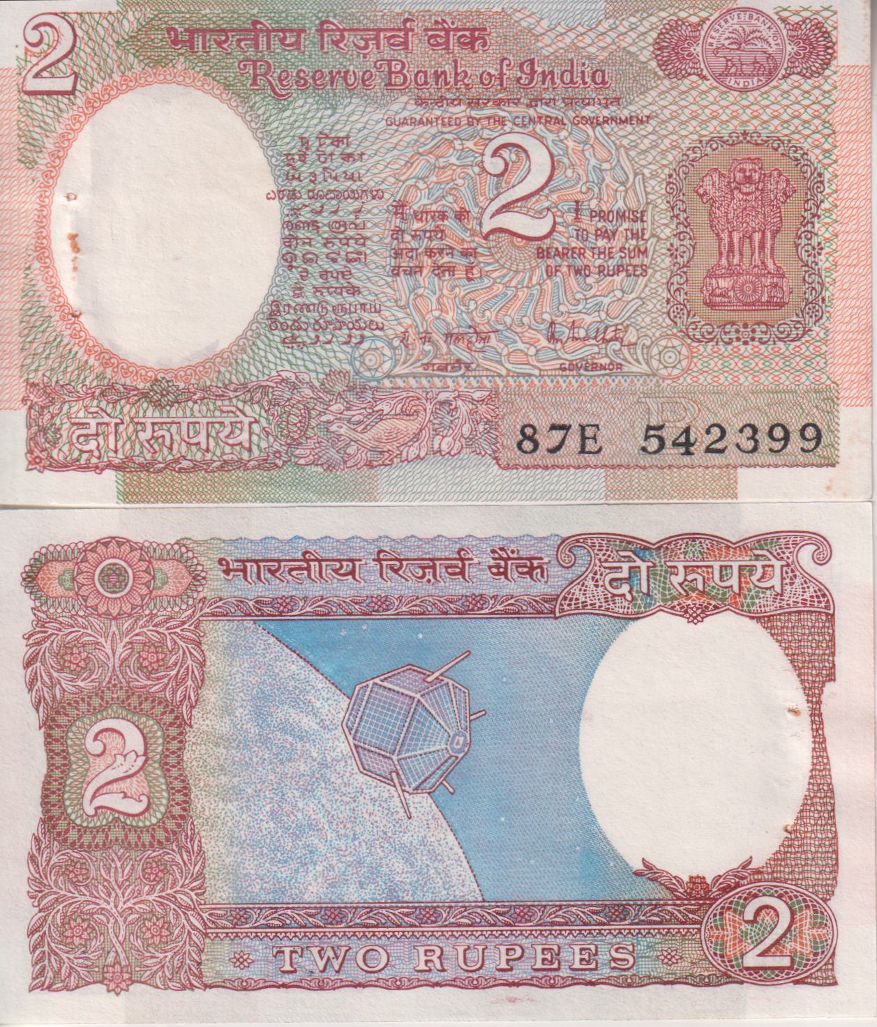 INDIA 2 Rupees 1985-90 P79 UNC (pin holes)