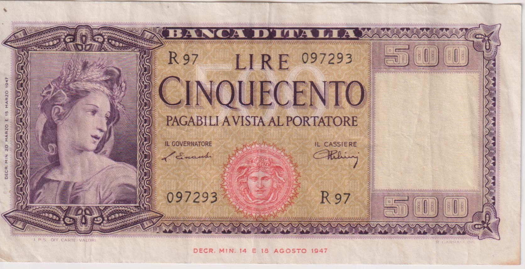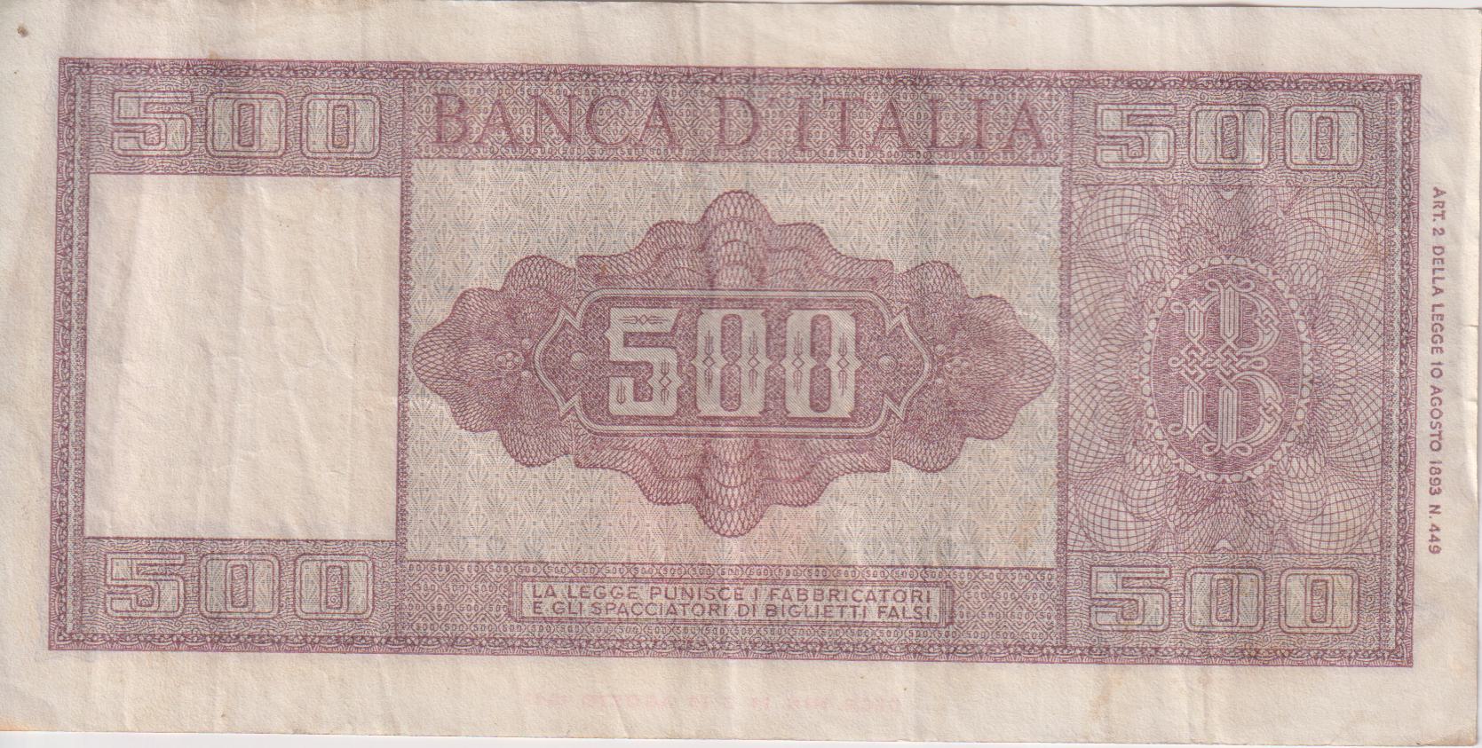 ITALY 500 Lire 1947-61 P80 VF+