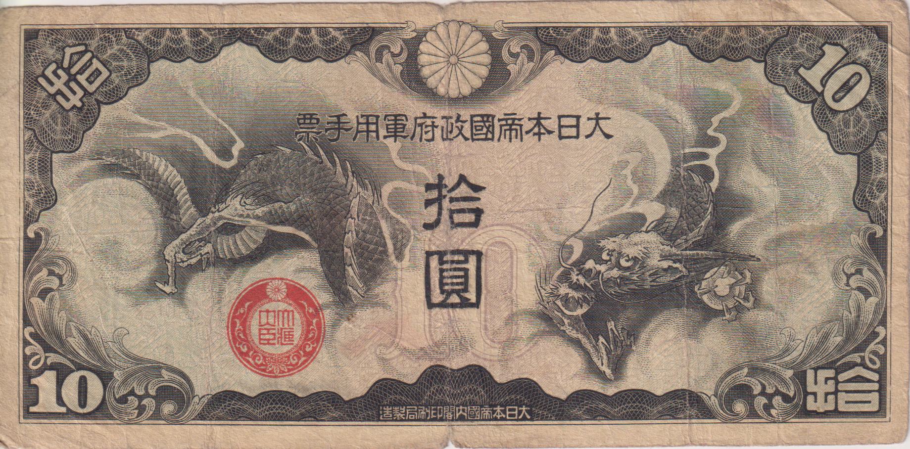 JAPAN 10 Yen China Japan Occupation military note 1940 PM-19 F
