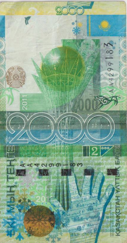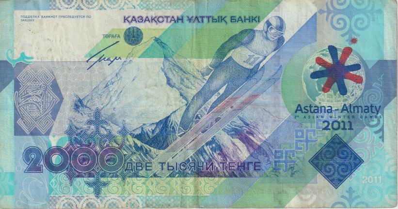 KAZAKHSTAN 2000 Tenge 7th Asian Winter Games 2011 P36 VF