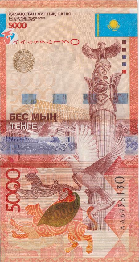 KAZAKHSTAN 5000 Tenge AA-Serial no. 2011-17 P38 VF
