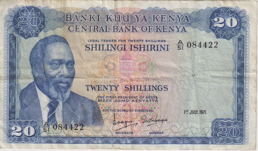 KENYA 20 Shillings 1971 P8 VG