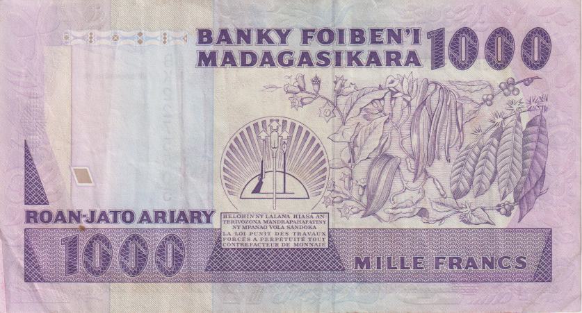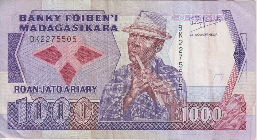 MADAGASCAR 1000 Francs / 200 Ariary 1988-94 P72 VF