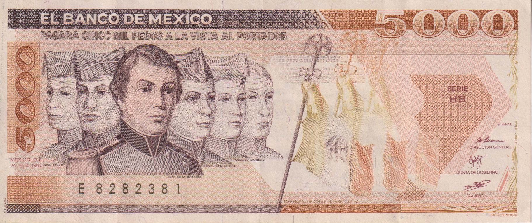 MEXICO 5000 Pesos 1987 P88 VF
