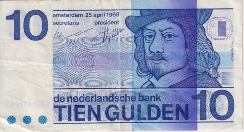 NETHERLANDS 10 Gulden Frans Hals 1968 P91 VF