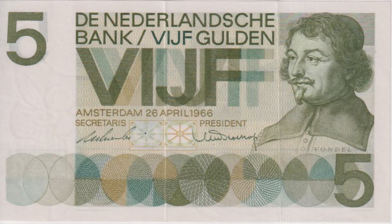 NETHERLANDS 5 Gulden 1966 P90 XF