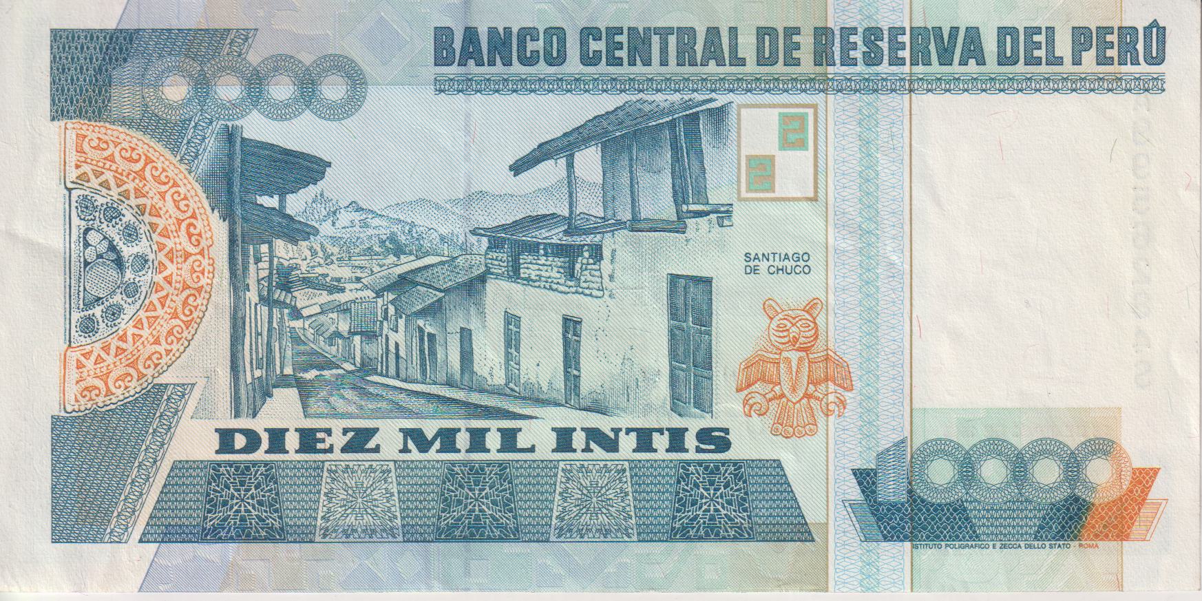 PERU 10,000 Intis 1988 P140 VF - Image 2