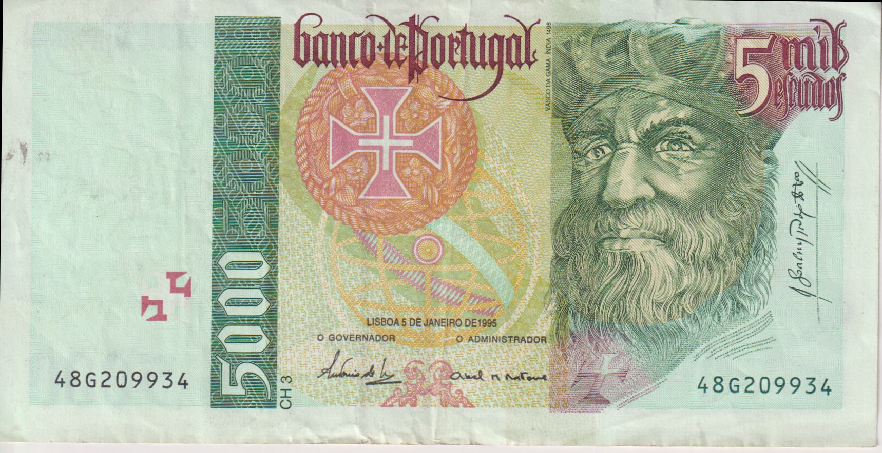 PORTUGAL 5000 Escudos 1995 P190 VF