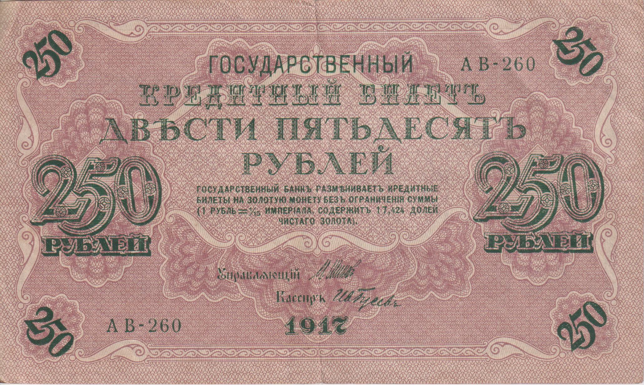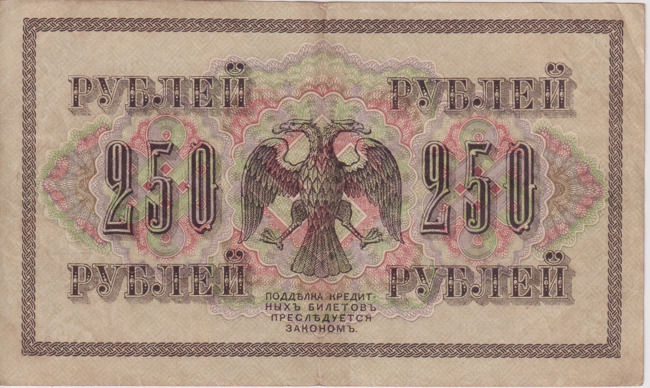 RUSSIA 250 Roubles 1917 P36 XF