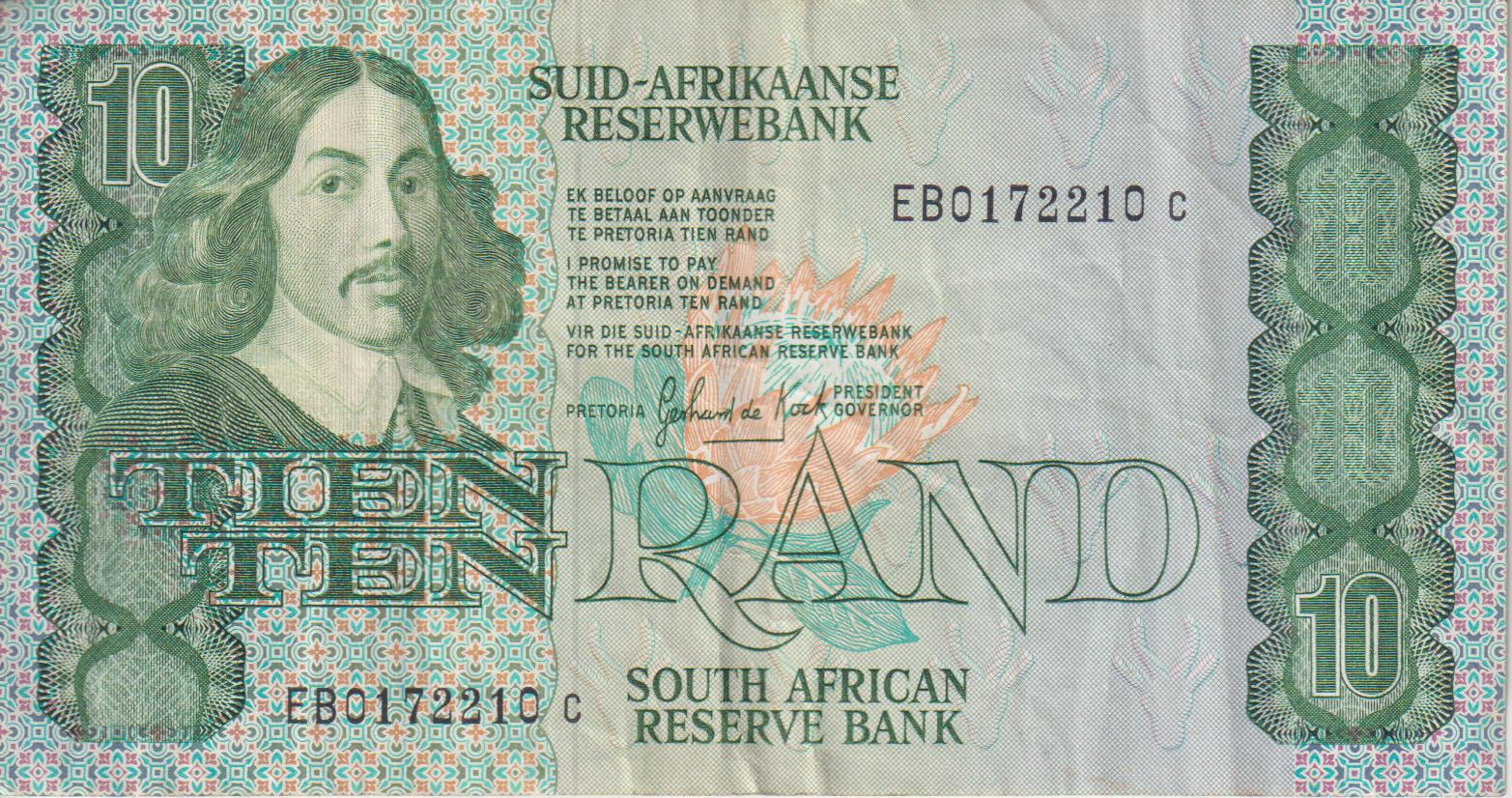 SOUTH AFRICA – 10 RAND GCP De Kock 1985 EB0172210 c A/E 542 VF