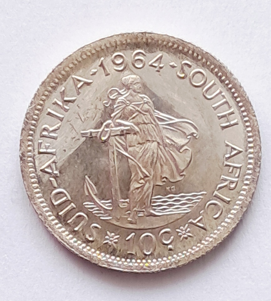 Tags: 10 cents, 1964, SOUTH AFRICA, ten cents, UNC, UNCIRCULATED
