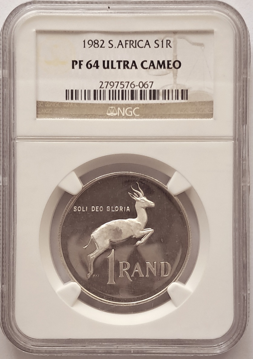 SOUTH AFRICA – 1982 ONE Rand NGC SLABBED PF64 ULTRA CAMEO