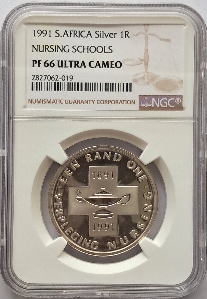 SOUTH AFRICA – 1991 SILVER ONE Rand Nursing Schools NGC SLABBED PF66 ULTRA CAMEO