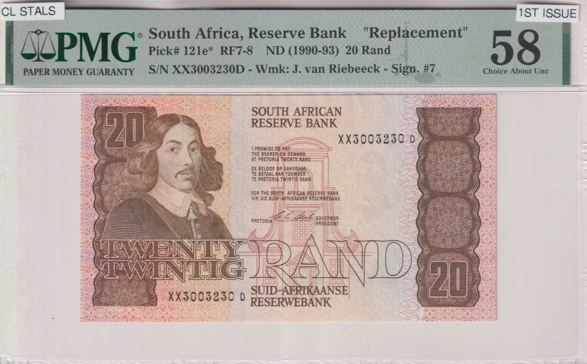SOUTH AFRICA 20 Rand C.L.Stals 1990-93 P121e Replacement, Choice About UNC – Grader PMG