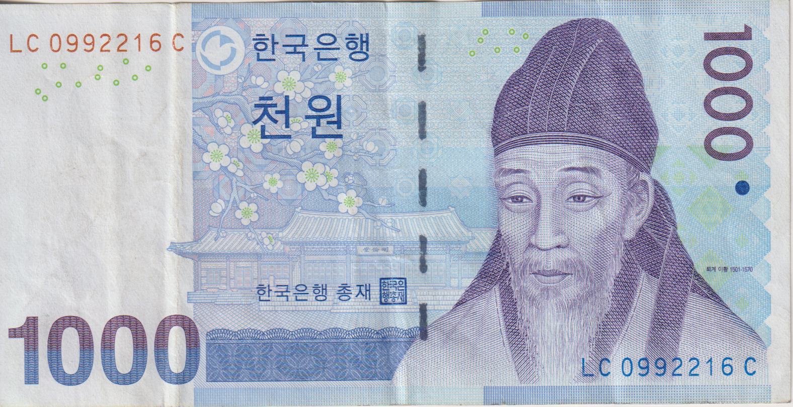 SOUTH KOREA 1000 Won 2007 P54 VF