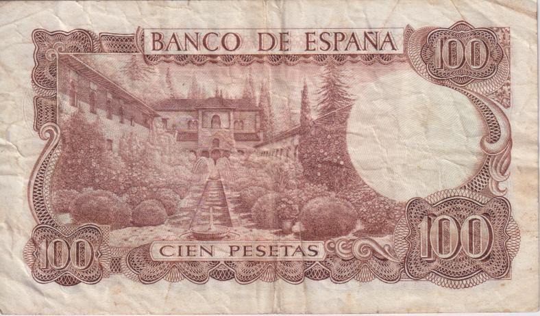 SPAIN 100 Pesetas 1970 P152  F - Image 2