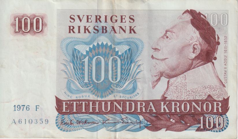 Sweden 100 Kronor 1976 P54 VF
