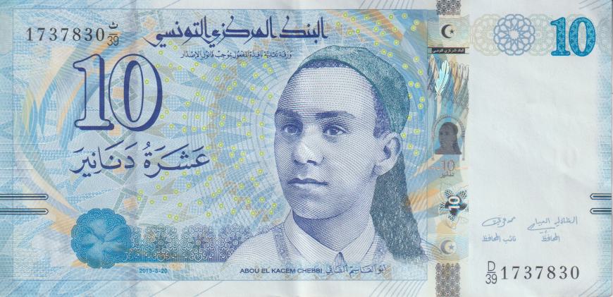 TUNISIA 10 DINARS 2013 P96 VF