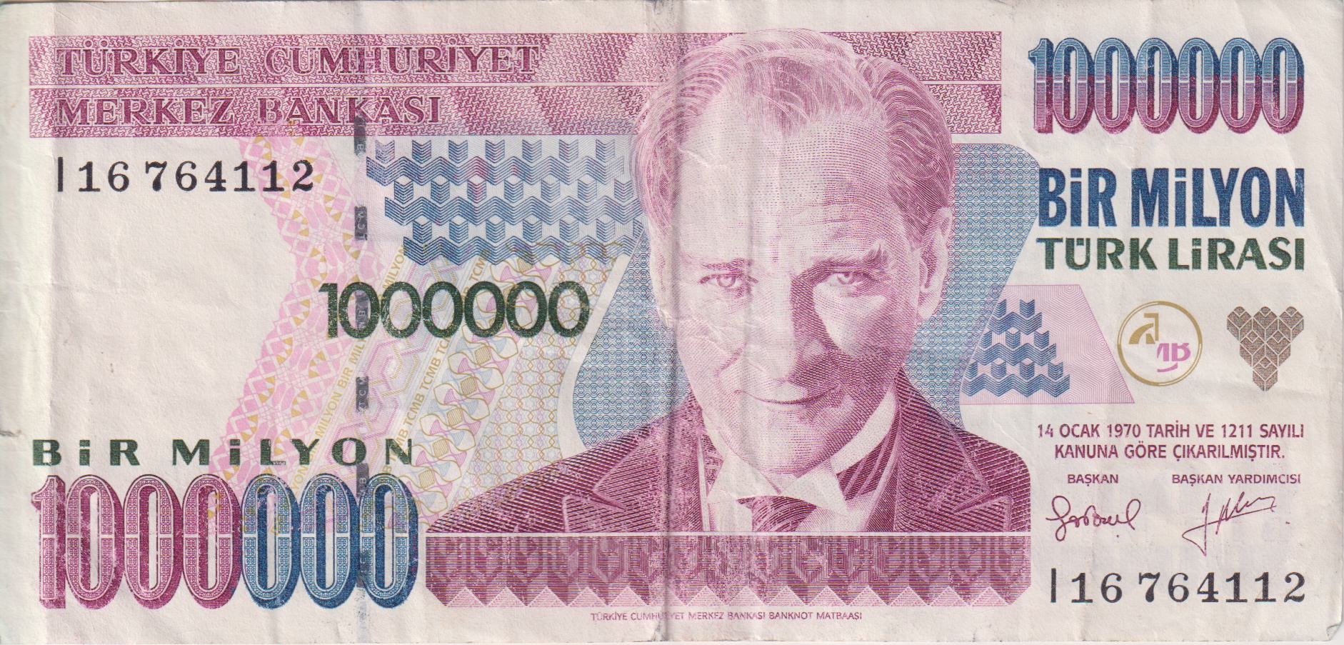 • TURKEY 1,000,000 Lira 1995-1996 P209  XF TURKEY 1,000,000 Lira 1995-1996 P209 XF R195.00