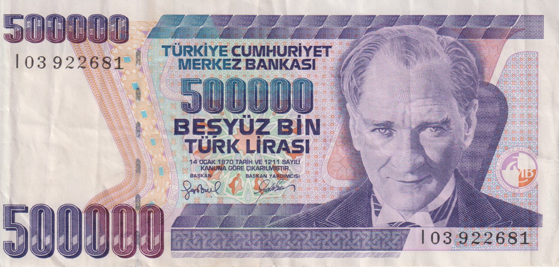 TURKEY 500,000 Lira 1997 P212 VF