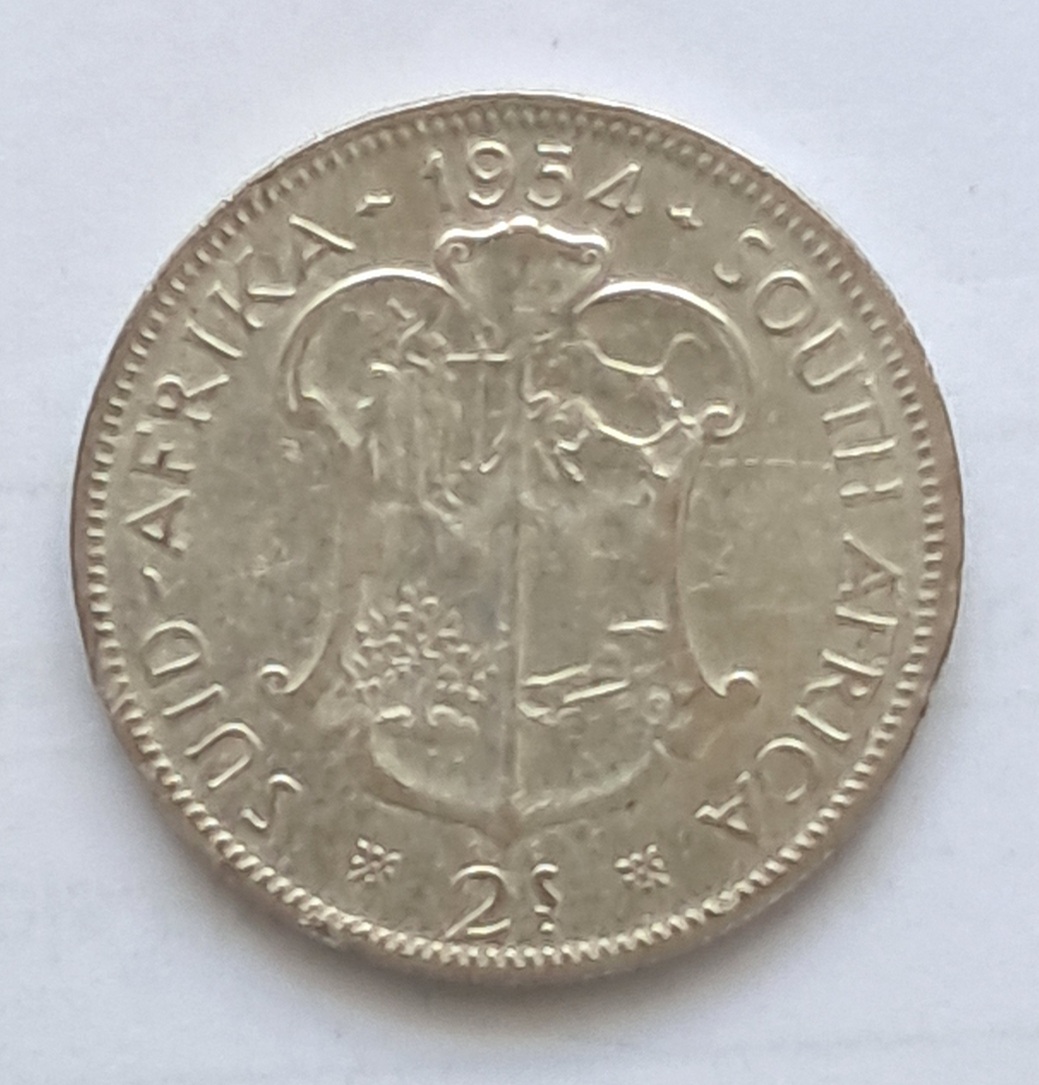 UNION OF SOUTH AFRICA – 2 Shilling 1954, Silver 0.500, Copper 0.500