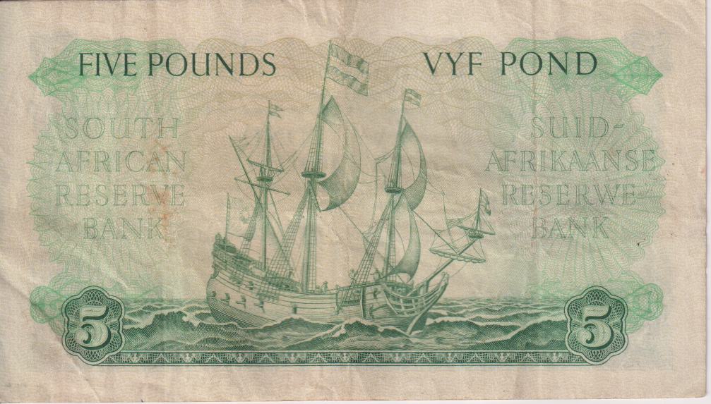 UNION OF SOUTH AFRICA 5 Pounds 1952 M.H.De Kock #180 C/20 137204 A/E VF