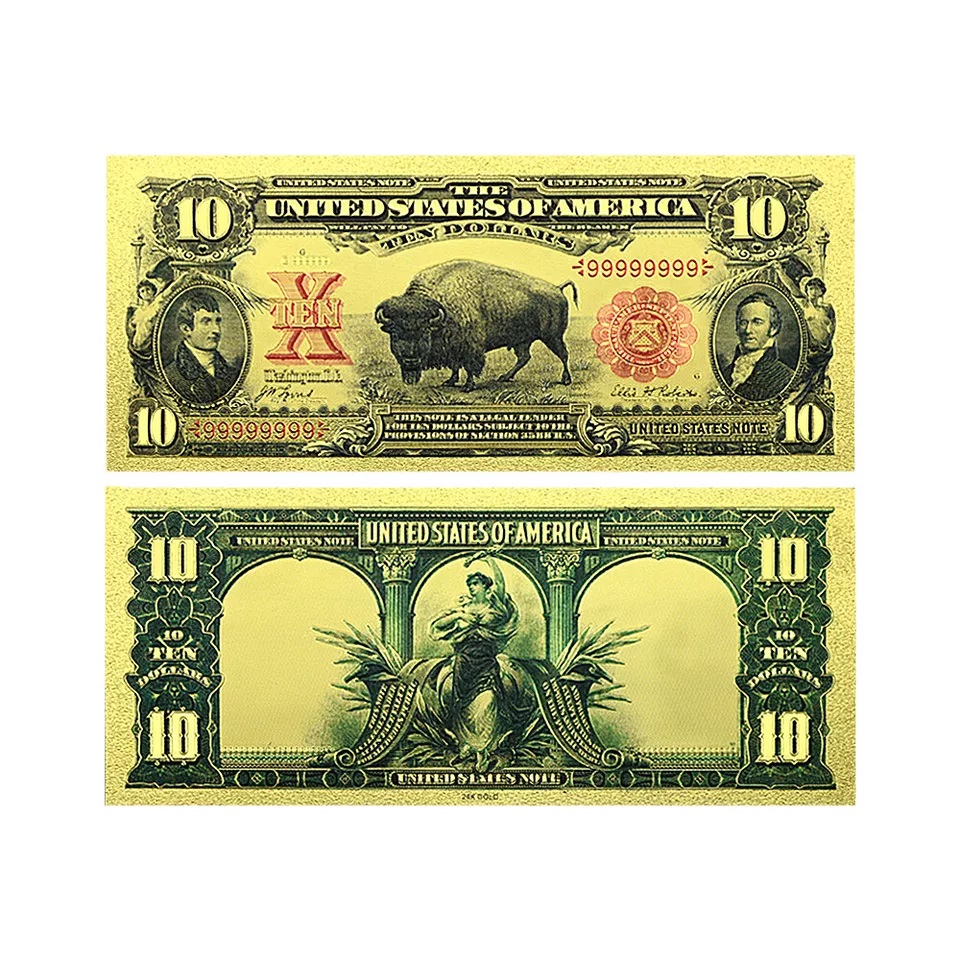 USA DOLLAR GOLD FOIL BANKNOTE 10 DOLLAR – BUFFALO – BISON – BEAUTIFUL GIFT
