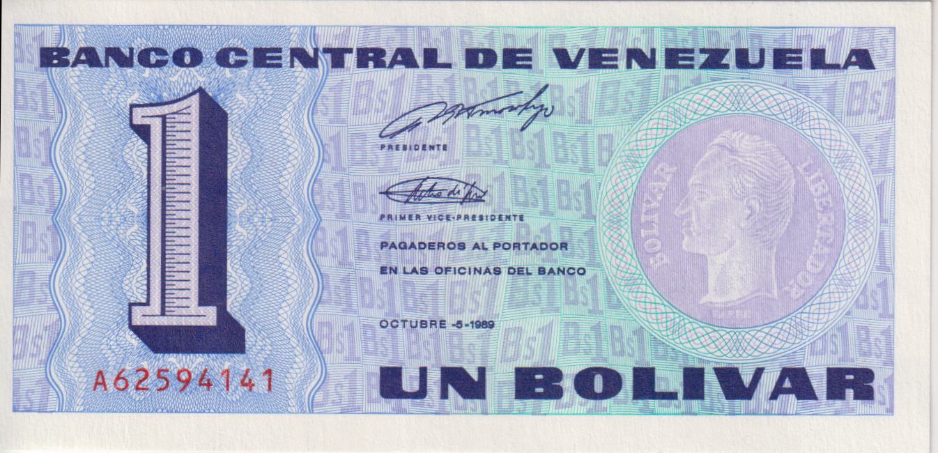 VENEZUELA 1 Bolivars 1989 P68 UNC