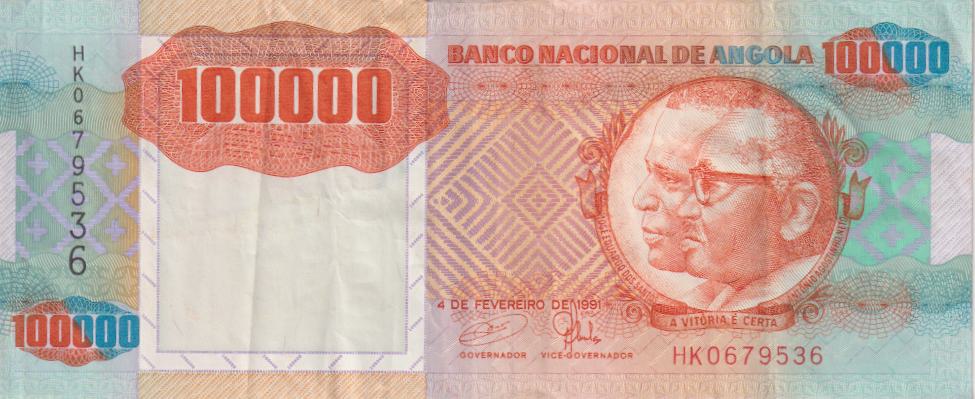 ANGOLA 100,000 Kwanza 1991 P133 VF