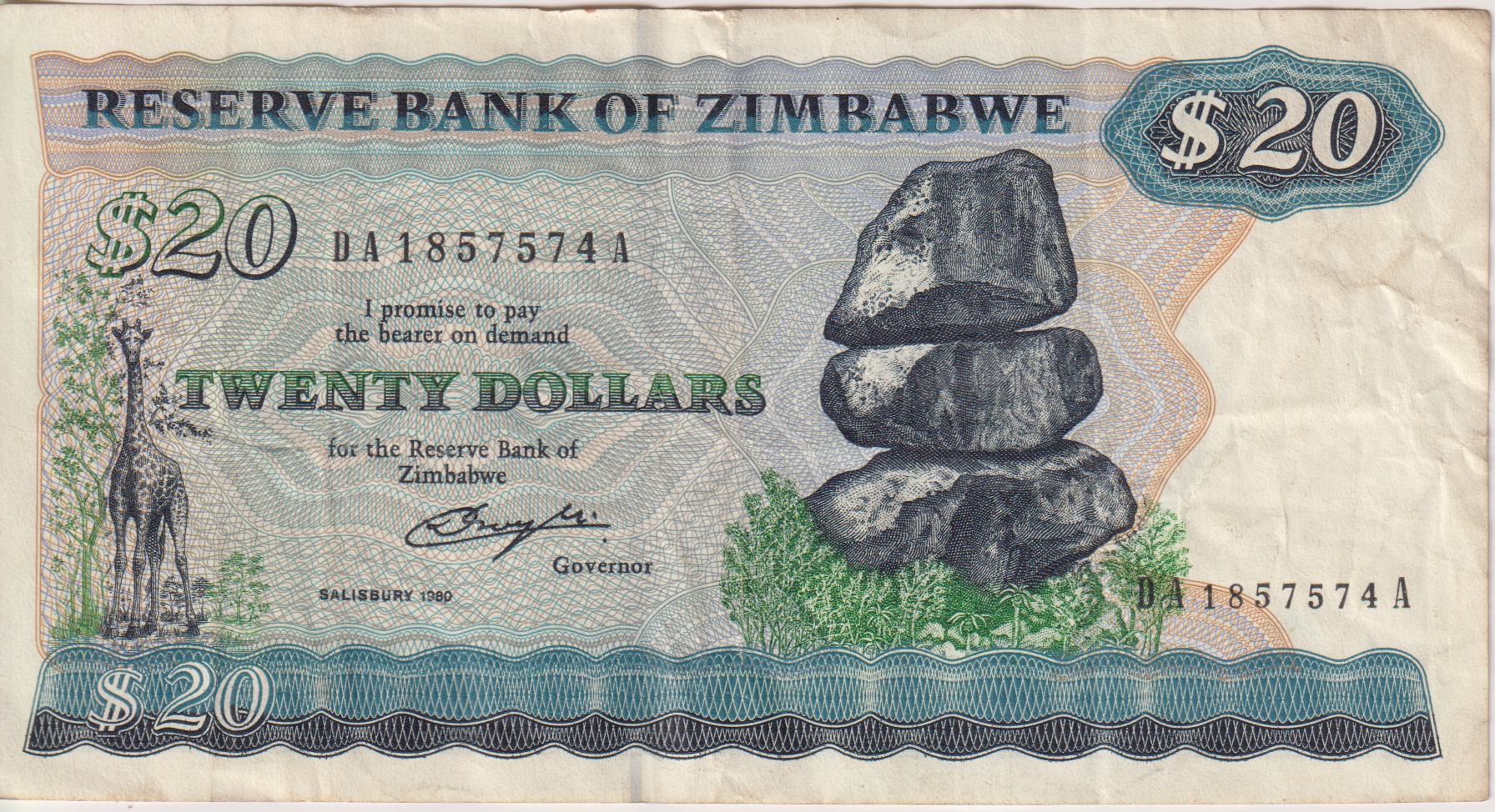 ZIMBABWE $20 Dollars 1980 P-4 VF